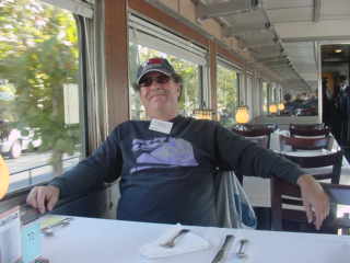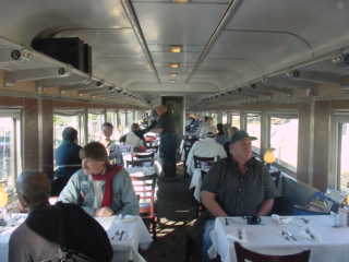 The east end of our train, whose consist was F7A 100, FWRY power car 1375, FWRY dining car 10204, FWRY table car 6052, FWRY table car 3106, FW bar/dance car 205, FWRY sleeper 2508 and FWRY F7A 101. At 8:15 AM, our train departed for Saticoy.