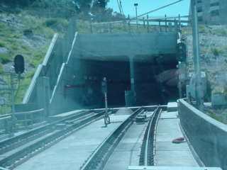 After stopping at the San Diego State University Transit Center, we exited the tunnel and continued our trip towards Santee and our group was amazed by the freight bypass east of El Cajon. We soon arrived at Santee and exited for a group photo.