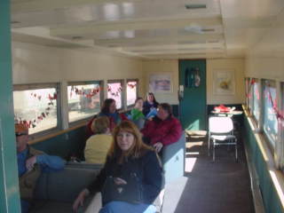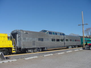 The rear of our train, whose consist was GP7 07, dome car 502 "Plaza Lamy", Central of New Jersey coach/concession 1158, an open car and Central of New Jersey coach 300. I went into the depot to pick up my one-way ticket to Lamy but they had put me down for two tickets. I suggested that I wanted to ride the dome car since it was not on my train the last time I rode and Leah refunded one of the tickets and gave me the dome car class silver ticket for the other. I then went outside and waited to board.
