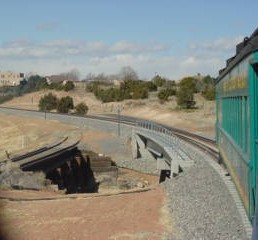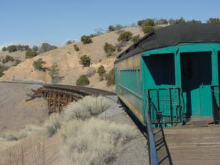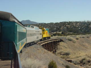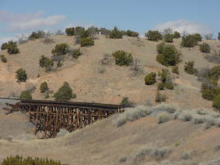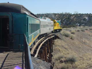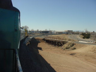 The Santa Fe Southern no longer crosses the wooden trestle because the New Mexico Rail Runner built new bridges on the part of the railroad over which they run.