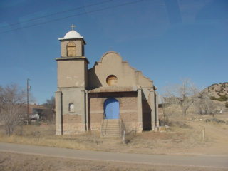 The train ready to return to Santa Fe. I joiined the end of the lunch line and had a hot dog and chips then talked to the train crew, who told me they would be leaving in thirty minutes so decided to walk up the line so I could photograph the train passing the Lamy Mission.