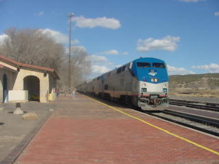 The Santa Southern train passes by me on the way to Santa Fe. I walked back over to the station and waited for my westbound Southwest Chief. First though, the eastbound version stopped and departed on time. Thirty-five minutes later, the westbound Southwest Chief arrived.