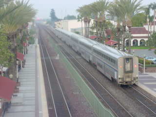 2/15/2009I arose before San Bernardino and visited Shirley in the lounge car for a cinnamon roll and cup of tea while Gwen made up my room then relaxed the rest of the way to Fullerton, where I detrained and crossed over the bridge to Track 3 to wait for my train home.