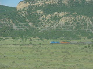 I saw two trains on the former Colorado & Southern; the second had these DPU's on the rear. We stopped at Trinidad for a third fifteen minute break and I visited the store there for some snacks then we continued on to Raton.