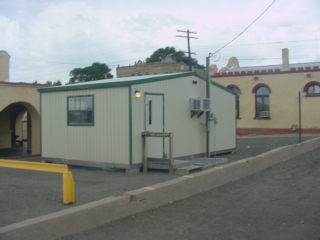 The rear of the Amtrak station trailer.