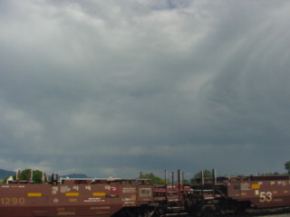 The clouds made for some interesting watching this afternoon. I walked up to the Raton Public Library and accessed the Internet to clear out my e-mail. Back to the station, the Amtrak agent returned and after I gave her the lunch recent and proper paperwork was filled out, I received my money back then went out to the platform one tired train rider just waiting for his train to arrive.