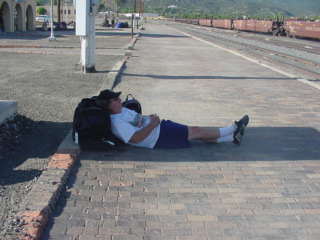 Here is a view of myself waiting for the train taken by a Boy Scout.