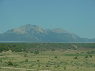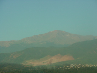 Pikes Peak was clear again today after my most excellent trip yesterday to the summit of that great mountain aboard the Pikes Peak Cog Railroad. The bus stopped at Colorado Springs and we had a fifteen minute break then once underway, we ran to Pueblo where we took another fifteen minute break and one more passenger boarded.
