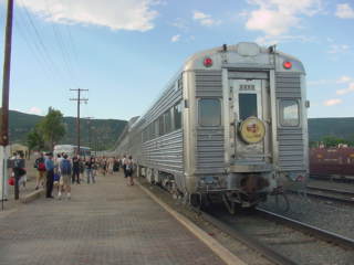 Southwest Chief, Train 4, arrived at 6:01 PM with a private car on the rear.