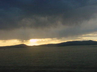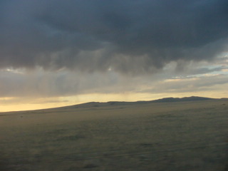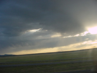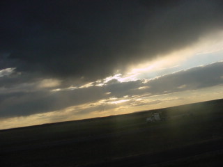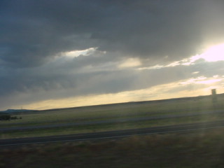 The clouds in the western sky. I watched about an hour of the DVD and just before Las Vegas, New Mexico, made up my room and a tired Chris called it a night.