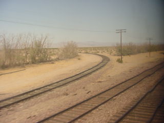 The train reached Cadiz with the wye and interchange with the Arizona & California Railroad.