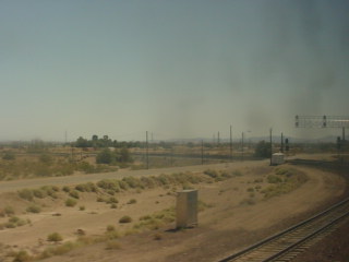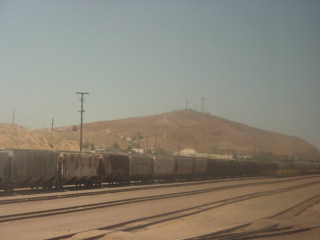 The original mainline went around the hill to the left before the deep cut was built which the Southwest Chief just passed through to reach Barstow.
