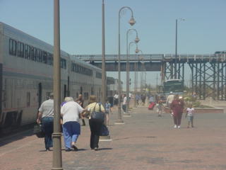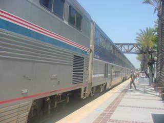 Pacific Surfliner 578 arrived with a Superliner lounge car in its consist. I boarded the lowel level of the cab car for the fast trip to Santa Ana, where my mother was waiting with the van to take me home. It was a great trip from the detour through Wyoming on the California Zephyr, the tourist trains in Colorado, the Union Pacific Railroad Historical Society steam shop tour and trip beyond Yoder, culminating in the just-concluded late Southwest Chief experience. I was now home for just five nights before goingdto Michigan for Train Festival 2009 in Owosso.