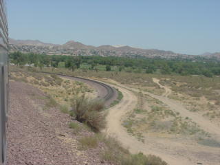 The Southwest Chief departed Barstow by going under the highway bridge and would run to the north of the yard.