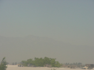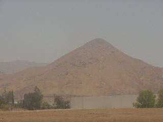 Mount Baldy through the haze of a summer afternoon in the San Bernardino Valley.