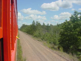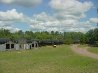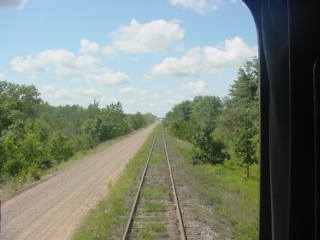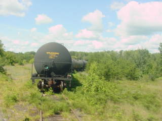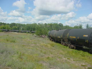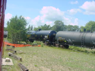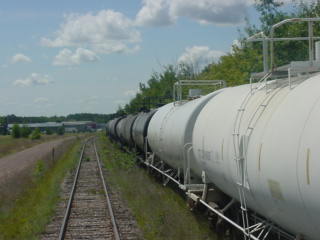 Tank cars are stored all over this railroad, which is owned by the Wisconsin Department of Transportation. A trail, which used to be the second track, parallels our route as far as Trego.