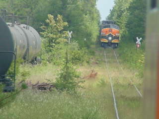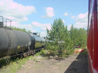 The railroad's F7A 423 had been switching more tank cars for storage on this railroad. After a few minutes, we continued on our way back to Spooner.