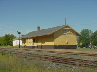 The Dresser SOO Line station built in 1887. I continued north on Wisconsin 35 to US Highway 8 and east to Turtle Lake, where I turned left onto US Highway 63, taking that to Spooner where I found the railroad with twelve minutes to spare.