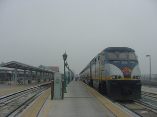 Thruway Bus 1/24/2009I drove down to the Santa Ana station at 4:50 AM after it poured with rain which lasted about 15 minutes but stopped long enough for the Thruway Bus to pick me up as the lone passenger. We drove north to Fullerton through the rain, picking up five passengers before I slept most of the way to Los Angeles. There we picked up about eight more before we were on our way to Bakersfield. It rained into the San Fernando Valley then on the climb to Gorman but once over the Tejon Summit, we came into bright sunshine as we dropped into the San Joaquin Valley. After the Interstate 5 spilt, we ran into the Tule Fog that was really thick, which lasted until Bakersfield where the fog lifted and we arrived at the Amtrak station early. The train was open but we were not allowed to sit in the comfortable Surfliner-style cab car.