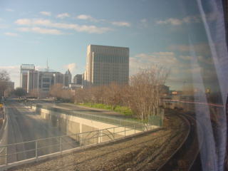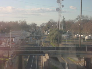 The former Sacramento Western Pacific station, now the Old Spaghetti Factory. We joined the Sacramento Light Rail line which we would follow south out of town.