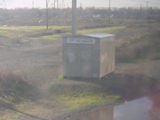 The Haggin Control Point as we reversed past it. We continued reversing across the American River in order to pass the switch and signal so we could wait for a green signal to proceed south.