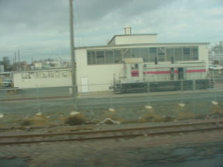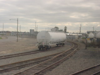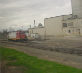 Plant switcher in Port Chicago. The train arrived at Martinez and I detrained to a cold windy afternoon and waited outside, talking with some of the station docents while I awaited my next train.