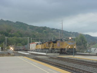 A Union Pacific freight train arrived just before my Capitol Corridor train to Sacramento.