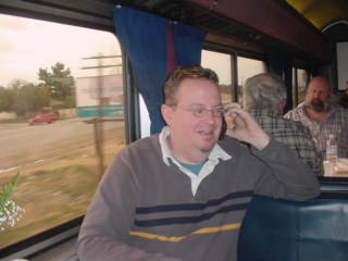 Locomotives at a plant south of Tipton. John and I went into the dining car for lunch and were greeted by Richard Talmy, an excellent Amtrak waiter. I had the Angus beef burger along with vanilla ice cream.