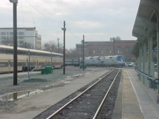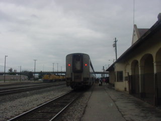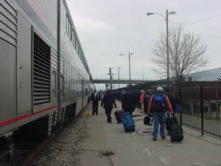 I went to Denny's for breakfast then watched "Meet the Press" before walking over to the Amtrak station with a new ETA of 8:30 AM. I met some railfans and we all walked to Track 3 to wait for our train to arrive.
