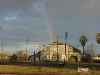 A rainbow with the pot of gold at the former Sacramento Shops. We waited out in the cold morning air for our Coast Starlight.