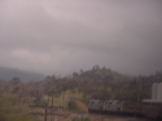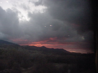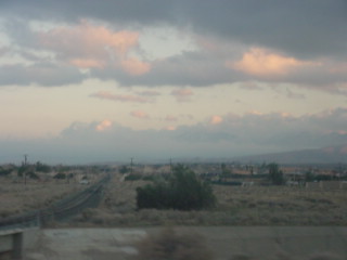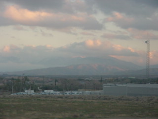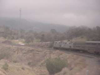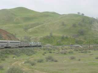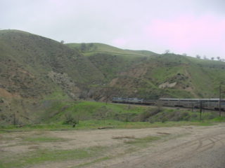 The Coast Starlight dropped down the grade to Mojave, which we passed at 4:24 PM. We ran over Ansel Hill and then across the Antelope Valley, through Lancaster at 4:50 PM and Palmdale at 4:56 PM.