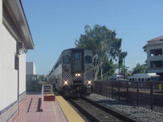 Pacific Surfliner 583 7/20/2009The train arrived on time and I boarded the lower level of Pacific Business Class for my trip to Los Angeles. At Anaheim, we met Pacific Surfliner 582 which had a low-level trainset and the Great Dome running to San Diego for the night. That set was being used to expand the Pacific Surfliner consists during the Del Mar Race season. Our train ran to Fullerton before sprinting the final distance to LAUPT where it arrived early. I walked over to Track 11 to wait for the Southwest Chief to Chicago.