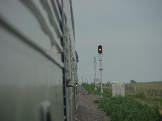 For some reason, since Las Vegas, we had been running on red signals and before Onanya, received a yellow signal so we picked up the pace until we came to another red signal. The U2 DVD finished just before 5:00 PM and I went to the dining car for dinner where I had the same meal as yesterday with a couple on a North American Rail Pass whose husband was raised on Valencia Street in my neighborhood in Santa Ana.