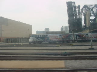 Amtrak P42DC 157 in its Disney's "A Christmas Carol" paint scheme was at the Chicago Amtrak Yard before it started to rain. I watched "Led Zeppelin Live" and enjoyed the band as we escaped Chicago and made our way into Indiana and then Michigan.