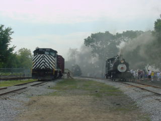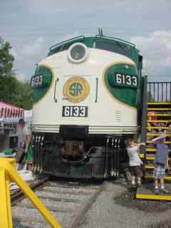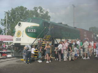 As one entered Train Festival 2009, you were greeted by Southern FP7 6133, nee Cincinnati, New Orleans and Texas and Pacific 6133, built by Electro-Motive Division in 1950, which was visiting from the North Carolina Transportation Museum in Spencer. You could smell steam in the air as you walked in.