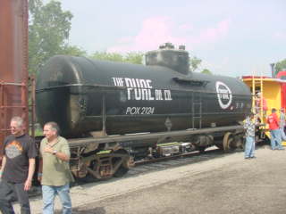 Detroit and Mackinac tank car 127 built prior to World War II. They were used as fuel-oil storage at a facility in Bay City, Michigan for many years. This and another were donated to the Steam Railroading Institute by RailAmerica in 2007, and now operates as part of our photo charter freight train and as eventual auxiliary water cars for our steam locomotives. Tank car 127 has been restored to represent a Pure Oil tank car thanks to a grant from the Gerstacker Foundation.