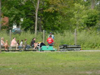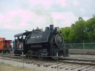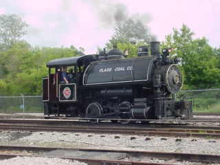 Flagg Coal Company 0-4-0 75 was steaming around the grounds on its track. Owned by John and Barney Gramling of Indiana, it is a 40 ton saddle tank locomotive built by Vulcan Iron Works of Wilkes Barre, Pennsylvnia in 1930. The 75 went into service in December 1930 as Flagg Coal Company 2 in Avoca, PA where it was used as a switch engine. In 1935 it was sold to the Solvay Process Co. in Jamesville, NY and renumbered 75. There, it was used to push four-wheel hopper cars from the steam shovel to the crusher at the rock quarry. In the early 1950's the Solvay Process Co. disbanded their railroad operation in favour of trucking and in 1953, No. 75 and twelve other locomotives were sold to Dr. Groman and his planned Rail City Museum in Sandy Pond, New York. There, the locomotive sat untouched until 1991 when John and Byron Gramling purchased it with the intent to restore it to operating condition. The father-son duo painstakingly disassembled the locomotive, moved it to their shop in Ashley, Indiana and over the course of the following ten years returned it to service, completing it in October 2001. Since then, the steam engine has since travelled as far as Florida, Michigan and North Carolina as a living, breathing ambassador of American steam railroading.