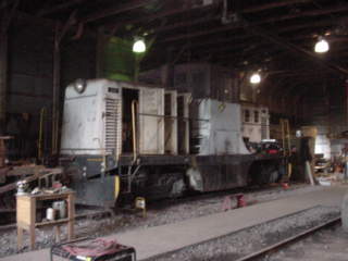 Steam Railroading Institute I-B2 25 ton switcher "Mighty Mouse", nee Shelby Grain and Feed built by General Electric in the 1940's, purchased at auction in August 2008 and is the Steam Railroading Institute's yard switcher.