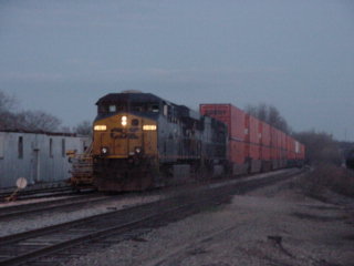 CSX motive power on a Kansas City Southern freight train here. I drove Missouri Highway 22 west to US Highway 63, which returned me back to La Plata then filled the van with $2.42 petrol and returned to the Depot Inn & Suites, checking in and receiving Room R for my one-night stay. I started to work on the Crab Orchard & Egyptian story then at 7:40 PM, walked out to the front desk, picked up the keys to the fifteen passenger van in which I would be picking up the members of the 20th Century Railroad Club of Chicago when they arrived and drove down to the Amtrak station.