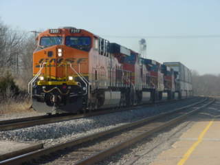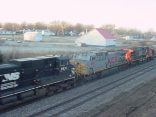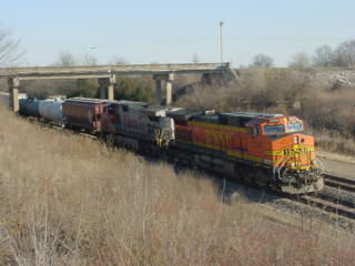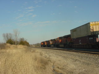 Just after I arrived, this colourful consist of BNSF, Norfolk Southern, Kansas City Southern and Canadian National motive power came through pulling this mixed freight.