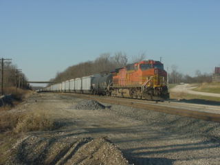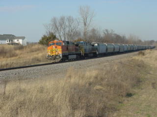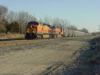 With the sun coming straight down the tracks, I went for a going-away shot of this eastbound BNSF train.