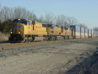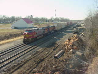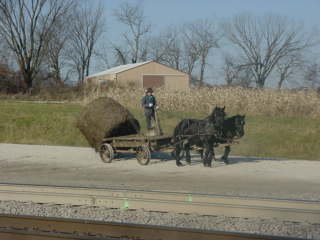 Next an eastbound BNSF piggyback train came through La Plata. I drove the golf cart back to the hotel before opening the Exhibition of Amtrak History and the Model Railroad Exhibit so that the 20th Century Railroad Club of Chicago members could see it whenever they wanted. I did give one a tour and he really enjoyed his visit. Now it was time to join the members on the Railfan Tour of La Plata given by Bob and Amy Cox. Once everyone was in the van, we drove out through the Amish Countryside to Cardy, the ghost town along the BNSF mainline, and parked at a grade crossing there.