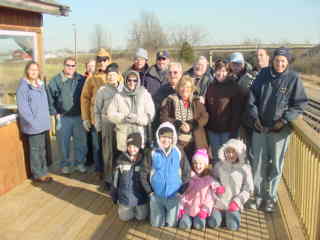 The 20th Century Railroad Club of Chicago members posed for this picture at the Chris Guenzler Million Mile Lookout Point, after which we drove out to Santa Fe Lake and caught a pair of trains there.
