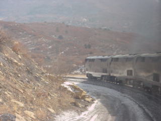 Descending the south side of Raton Pass to our next stop at Raton, where it was sunny but cold. We departed on time and the Asia DVD lasted right until lunch was called and I had the Angus beef burger and key lime pie. We encountered signal problems and lost over twenty minutes during and after lunch. Back in my room, my next DVD selection was Queen + Paul Rodgers "Return of the Champions". We departed Las Vegas at 1:03 PM {12:38 PM}.