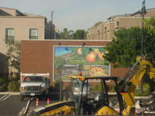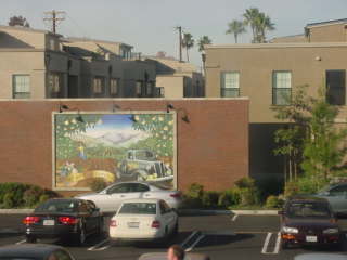 In Orange, on the side of a building just northwest of the station, are two murals to the Orange Industry of yesteryear, with one featuring a steam engine.