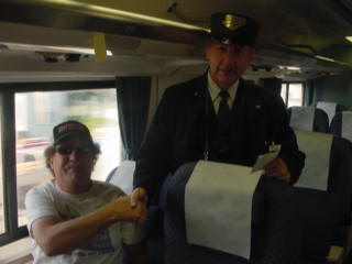 With Conductor Bob Riskie standing near, I gave the countdown and as soon as we reached the Orangethrope grade crossing, I had reached 2,000,000,0 kilometers or 1,2000,000.0 rail miles.