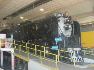 Union Pacific 4-8-4 844 built by American Locomotive Company in 1944. Perhaps reluctant to call the type by the name of a competitor (the first 4-8-4s were built for the Northern Pacific in 1927, which gave them the name), they were designated Class FEF by the UP, which stood for the Four-Eight-Four wheel arrangement. The FEFs operated over most of the UP system, initially on fast passenger trains, like the Overland Flyer, Los Angeles Limited, Challenger and Portland Rose, but, as diesels took over, they were reassigned to freight.