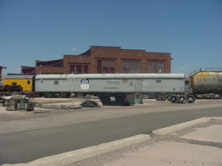 Union Pacific dining car 104704, ex. roadway tool car 904297 nee Union Pacific postal storage car 5772 built by St. Louis Car Company in 1962.