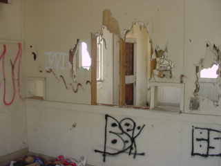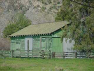 The freight portion of the former Caliente Southern Pacific station was moved nine-tenths of a mile east of the railroad crossing on Caliente-Bodfish Road, and is now a barn.