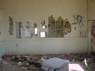A bright headlight north of Allensworth turned out to be just two light BNSF units. We pulled into Allensworth State Park and by the entrance is the former station.